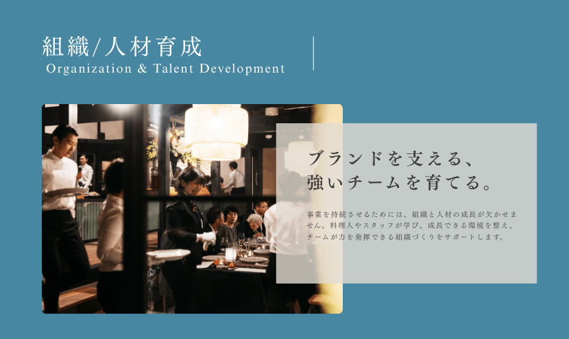 食の未来を担う人材と組織づくりをサポートしています。
